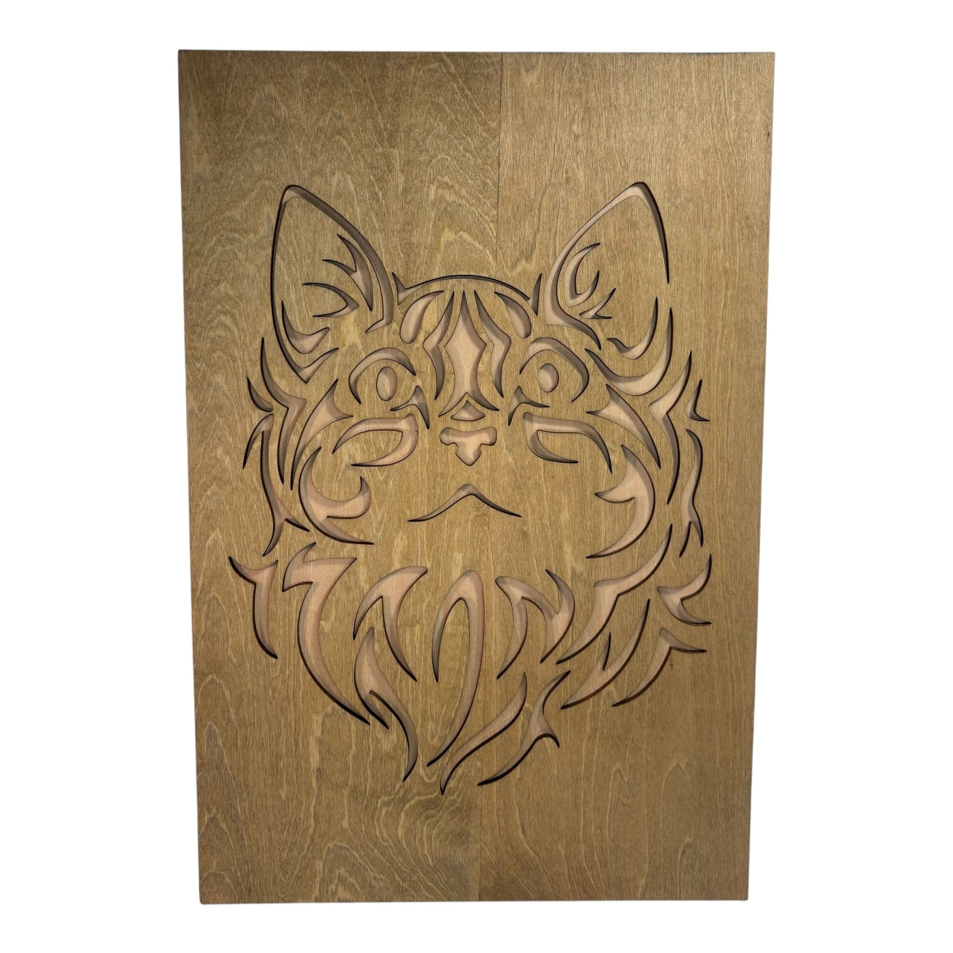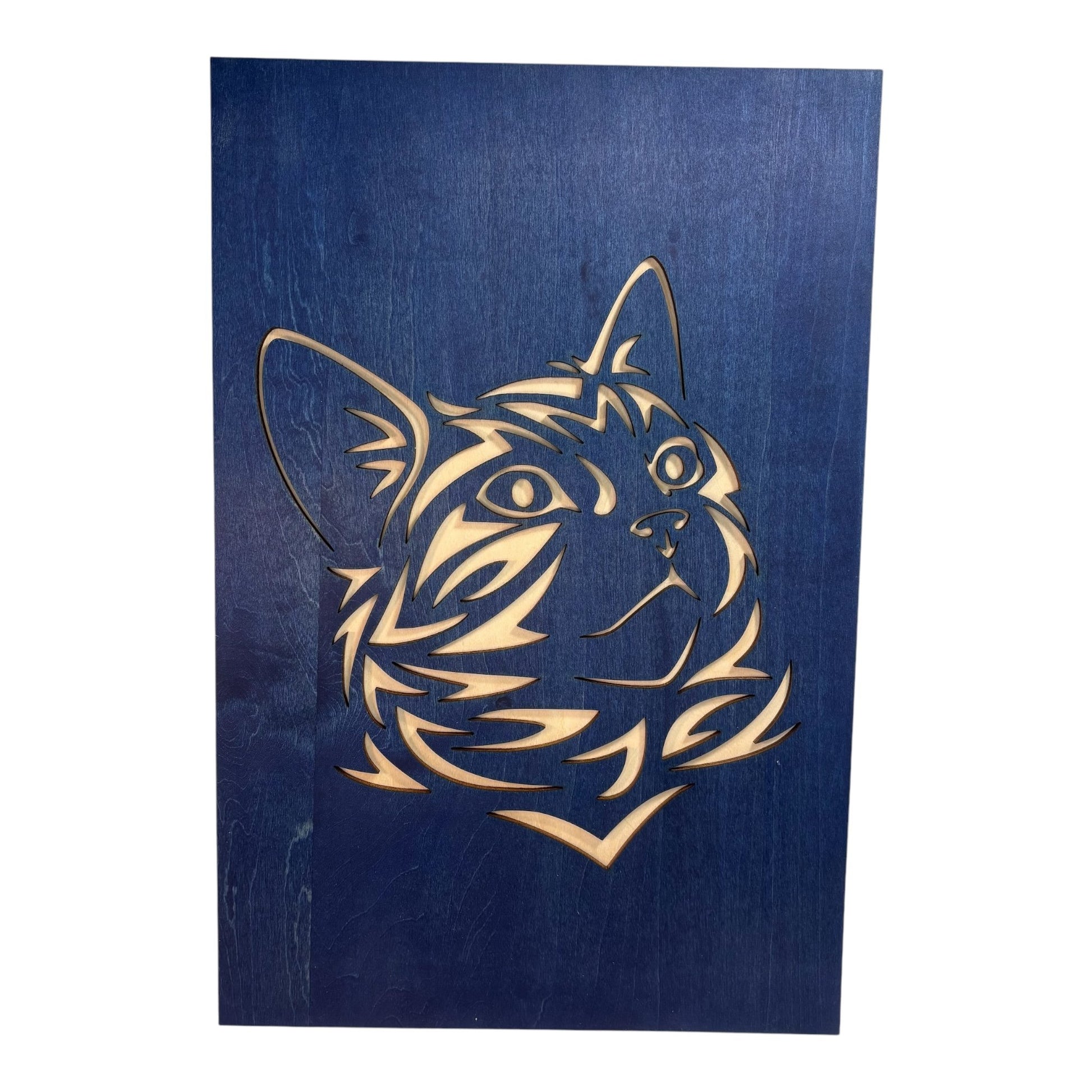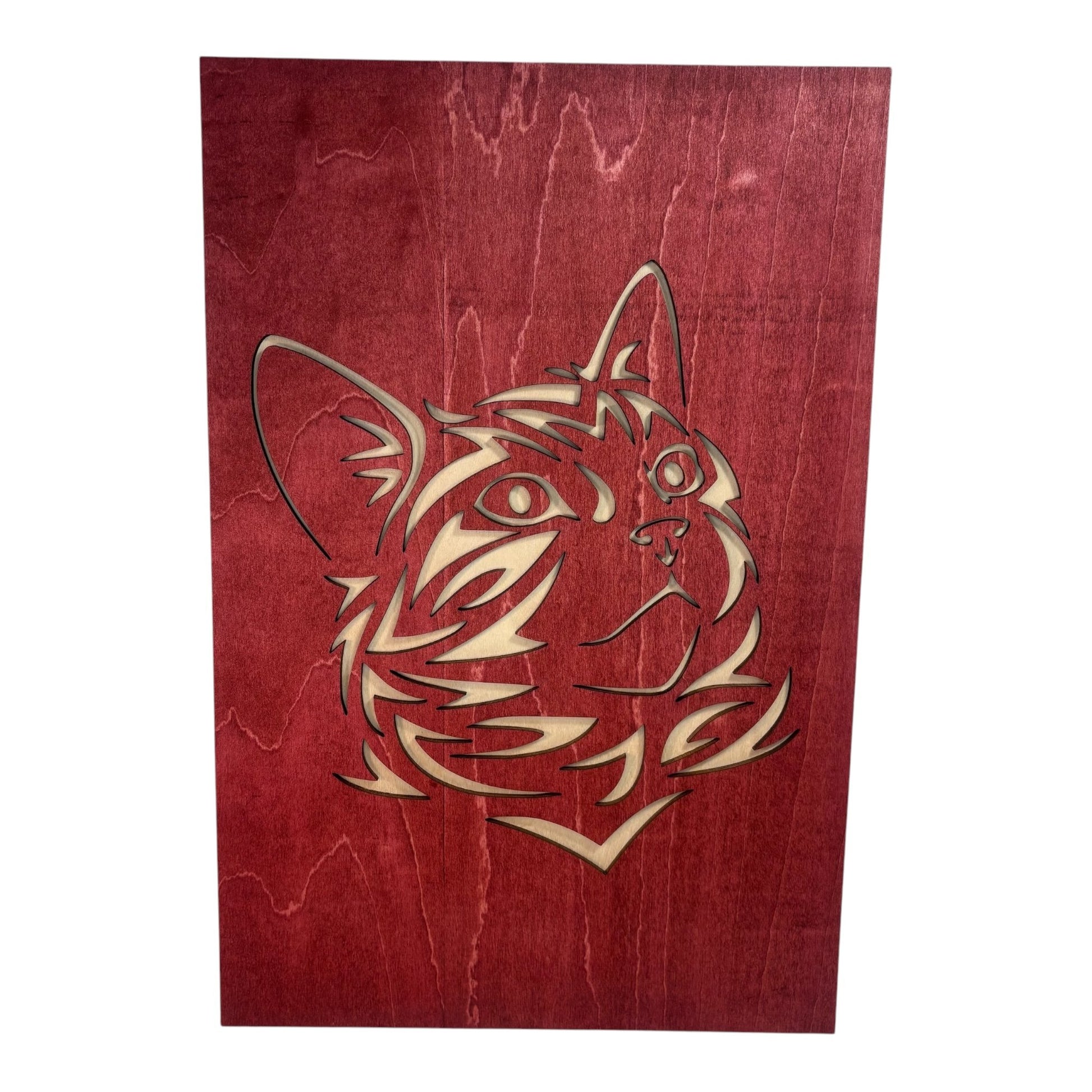 Bring an artistic and original touch to your interior design with this magnificent trio of paintings depicting cats in a unique tribal style. These paintings are composed of two layers: a raw wood background that highlights the delicately stained pattern on top, for an elegant and contrasting look. Perfect for cat lovers and those who love natural and artisanal decor.
