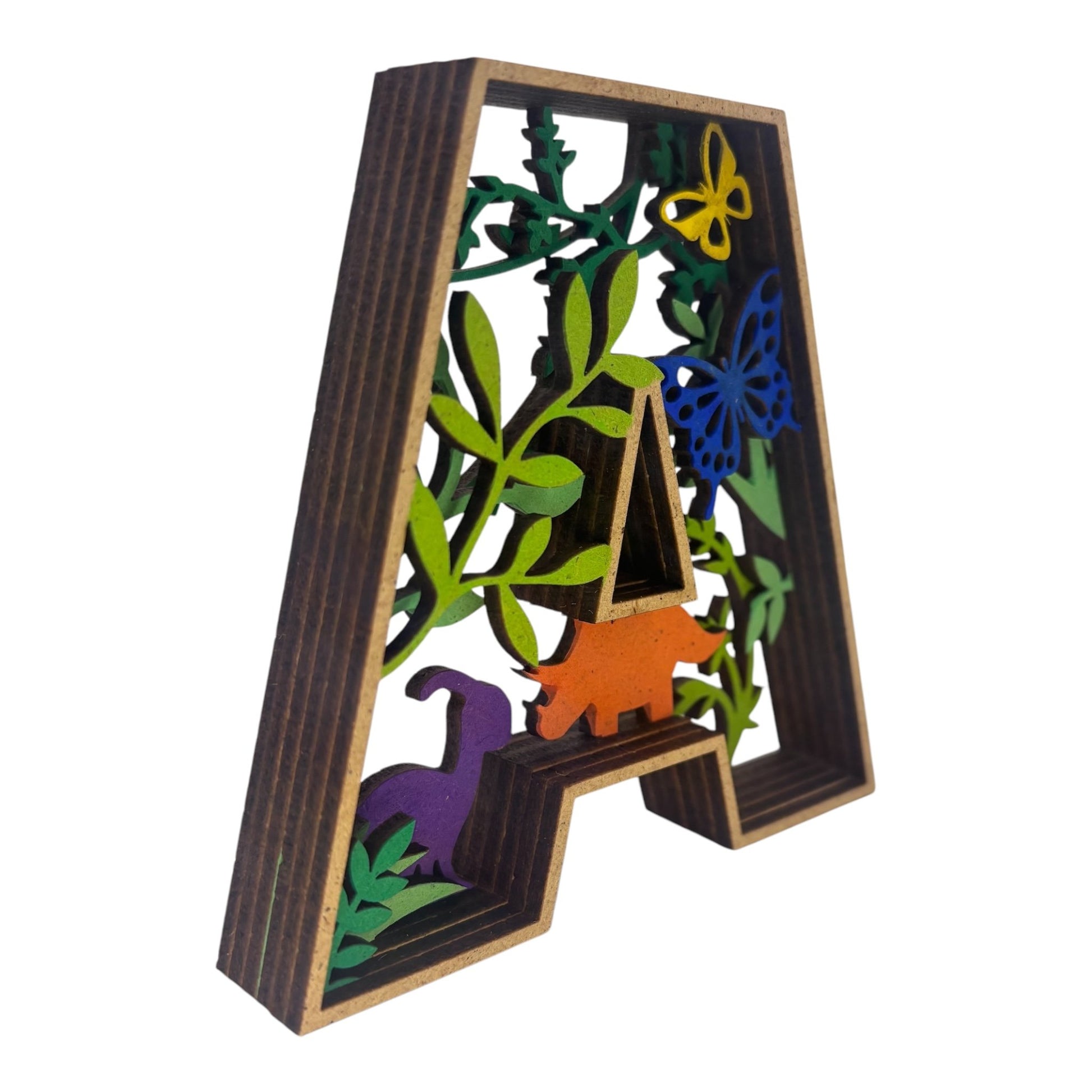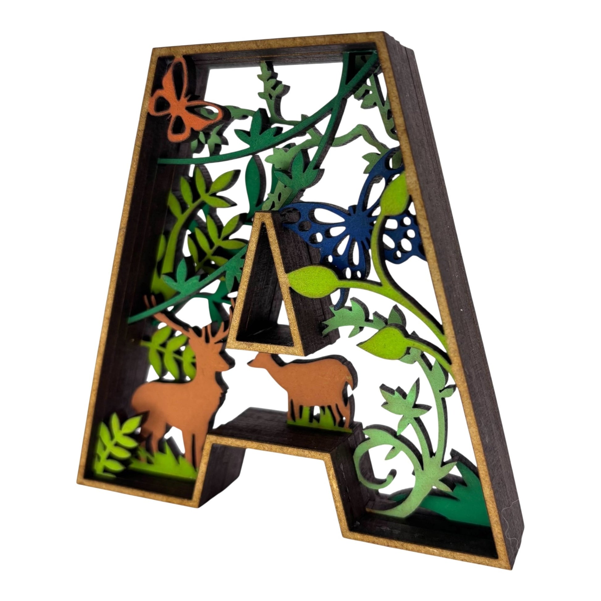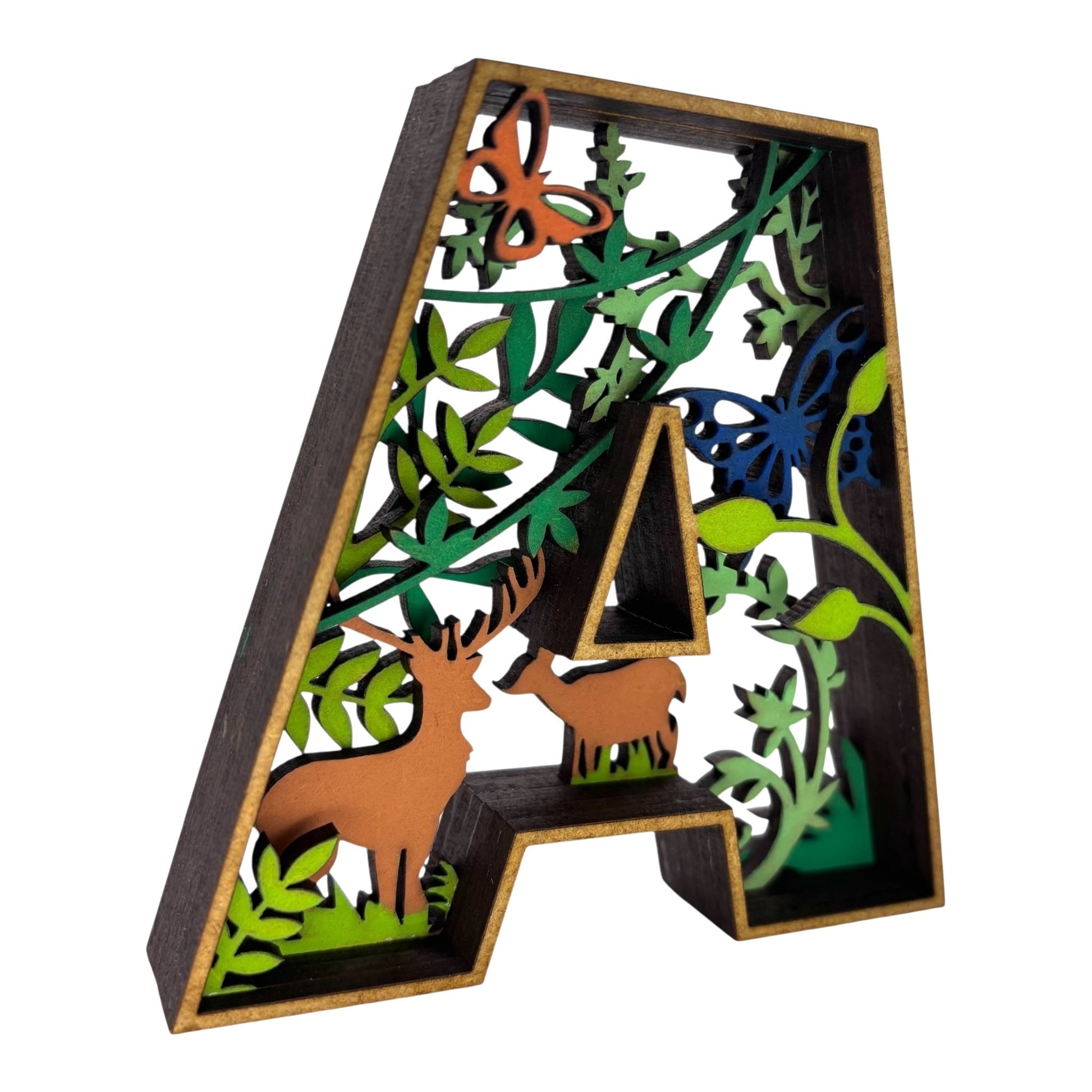 Apportez une touche originale et artistique à votre intérieur avec cette décoration en forme de Lettre "A". Un véritable diorama en 3D, cette lettre comporte un décor intérieur captivant, représentant un paysage avec des animaux. Chaque élément est peint et collé à la main, créant une œuvre unique qui ajoutera charme et personnalité à votre espace.